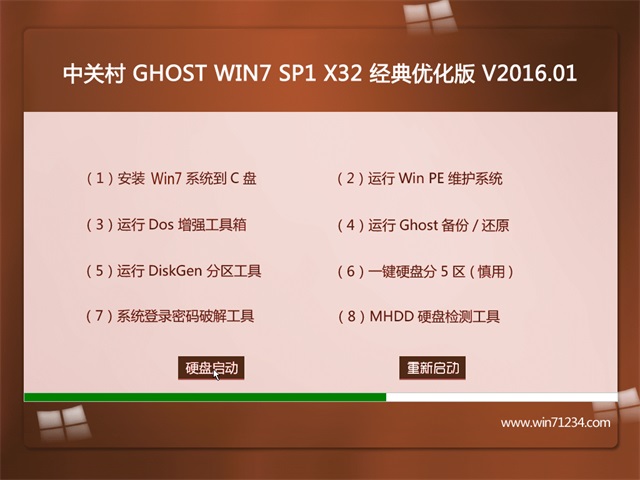 中关村系统 GHOST WIN7 SP1 X86 装机版 V2016.01