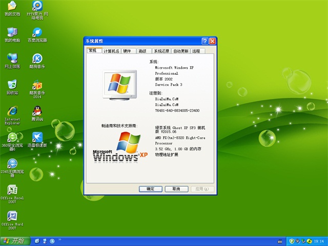 绿茶系统 GHOST XP SP3 电脑城快速装机版 V2015.06